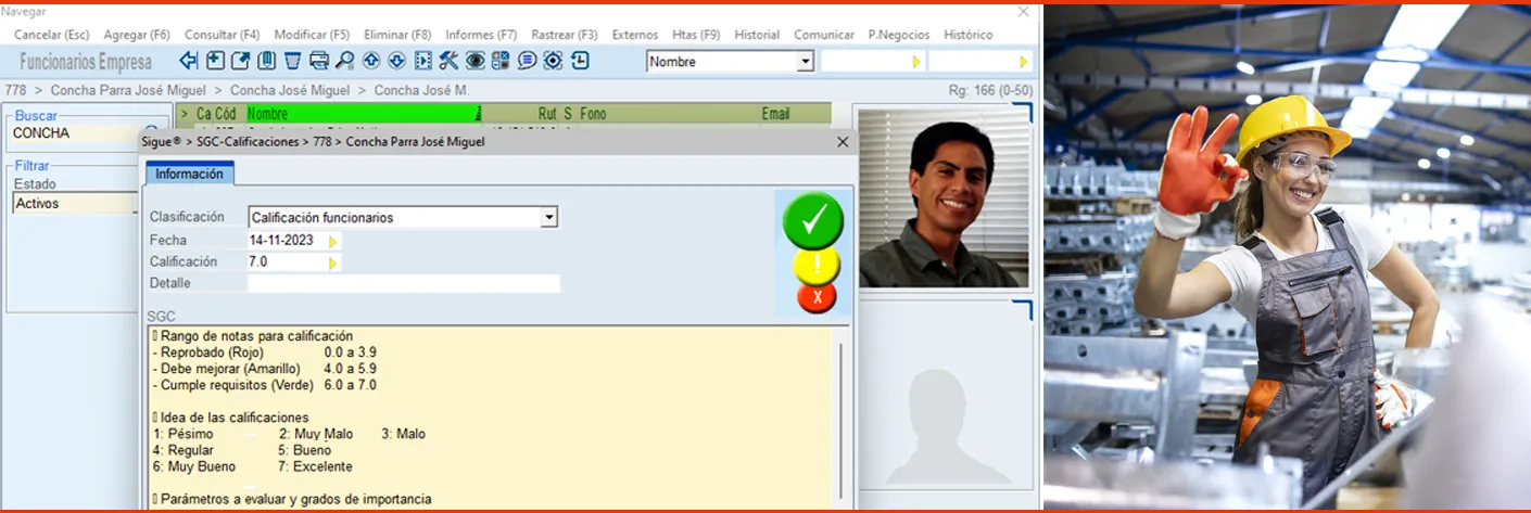- Gestión y calificación de hechos, proveedores y funcionarios. Calificación de la empresa frente a los clientes. Esto apoya la toma de decisiones y las oportunidades de mejoras, recordando para la evaluación las competencias y requisitos que se indiquen.